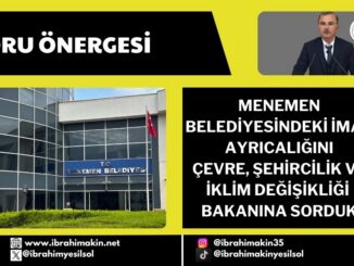 MENEMEN BELEDİYESİNDEKİ İMAR AYRCILAĞINI ÇEVRE, ŞEHİRCİLİK VE İKLİM DEĞİŞİKLİĞİ BAKANINA SORDUK