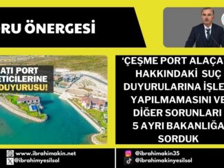 “ÇEŞME PORT ALAÇATI” HAKKINDA SONUÇSUZ KALAN SUÇ DUYURULARINI VE DİĞER SORUNLARI 5 AYRI BAKANLIĞA SORDUK
