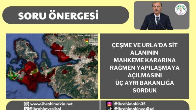 ÇEŞME VE URLA’DA MAHKEME KARARINA KARŞIN SİT ALANLARININ TURİZM ALANI OLARAK TAHSİS EDİLEREK YAPILAŞMAYA AÇILMASINI 3 AYRI BAKANLIĞA SORDUK.